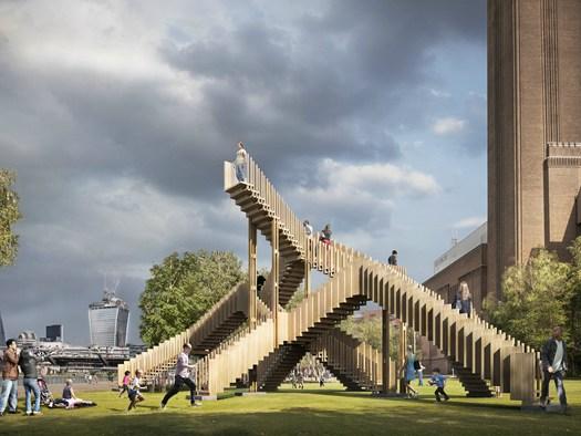 Бесконечная лестница, представленная на Лондонском фестивале дизайна, является первым сооружением, выполненным из таких панелей. Этот проект демонстрирует потенциал древесины в архитектуре.