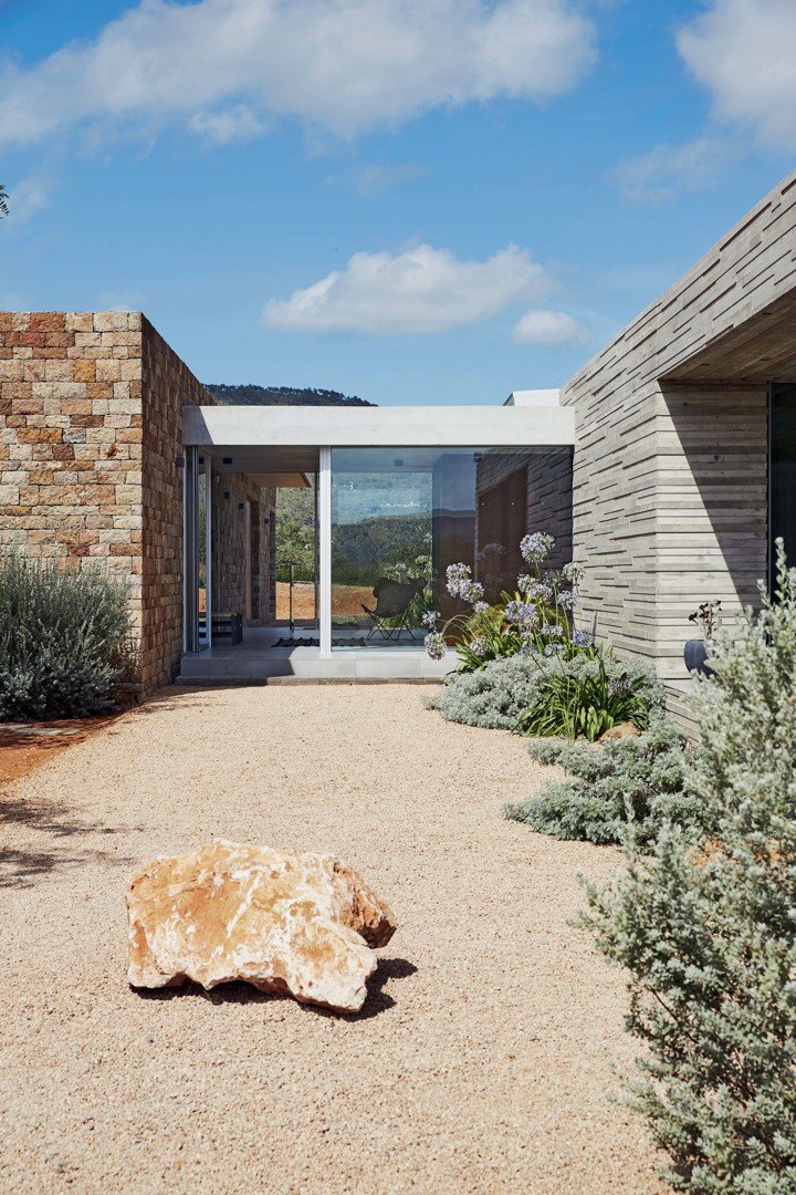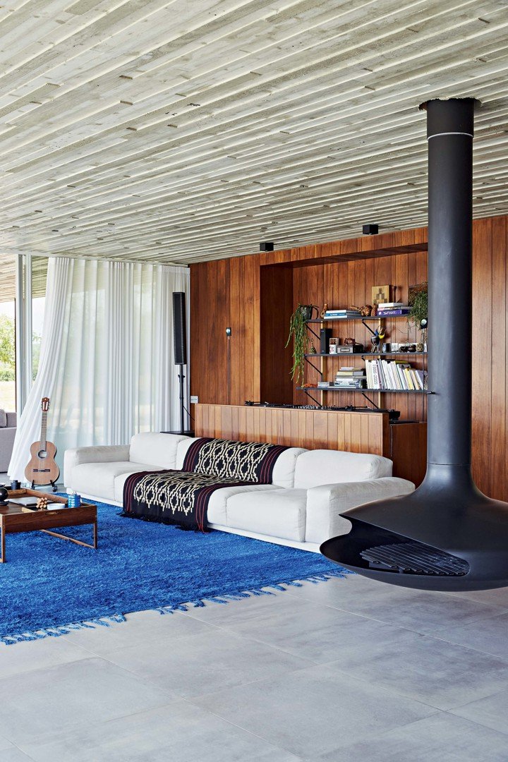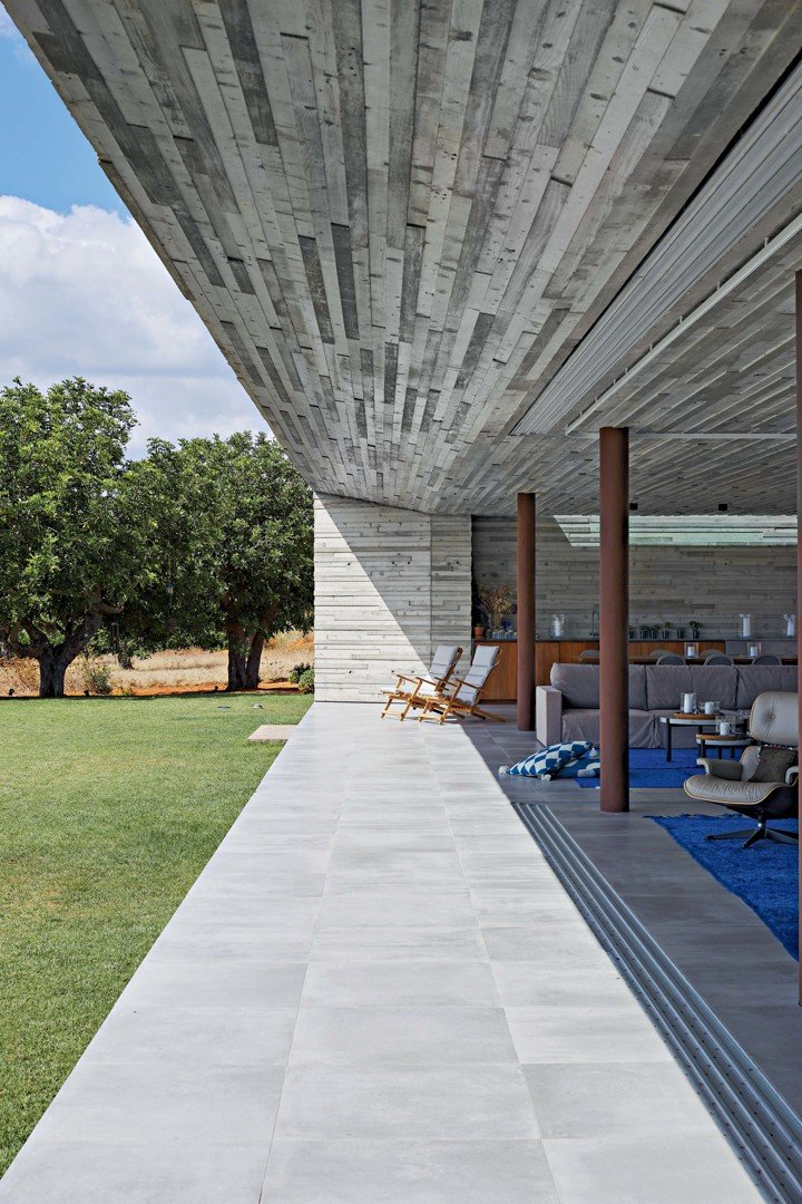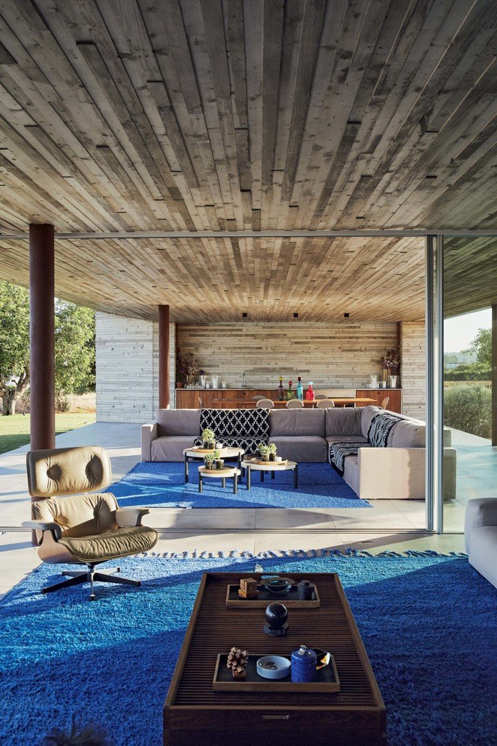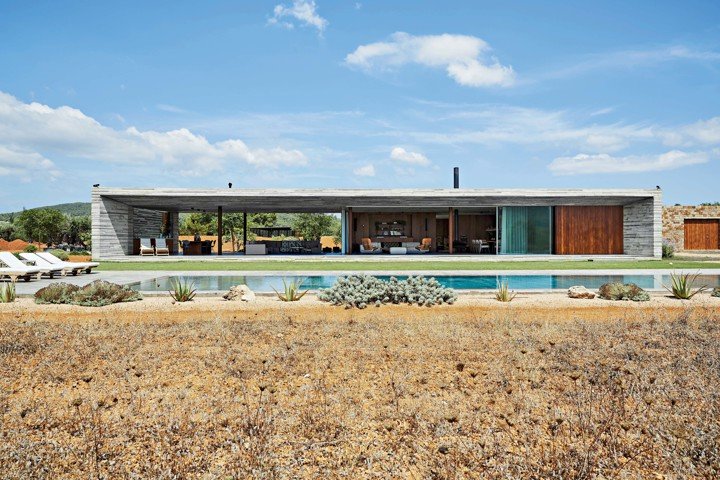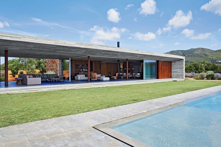Вилла построена из бетона, стекла и дерева, что подчеркивает её бруталистический стиль.