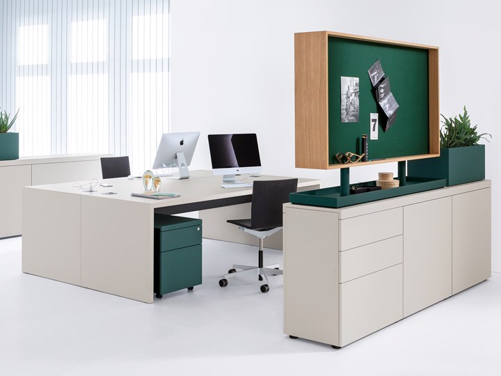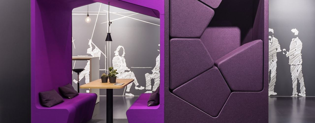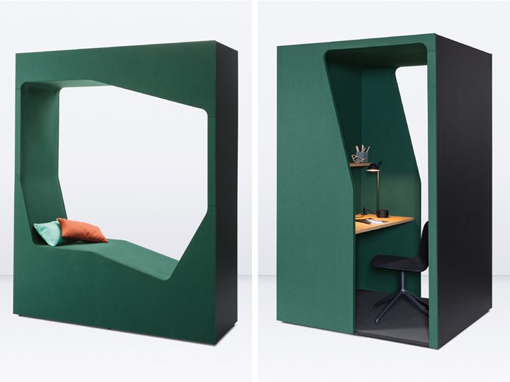 Среди новинок — серия кабин "паркур" для индивидуальной работы и отдыха, а также надстройки "basictop" для офисных шкафов, которые улучшают акустику и организацию пространства.