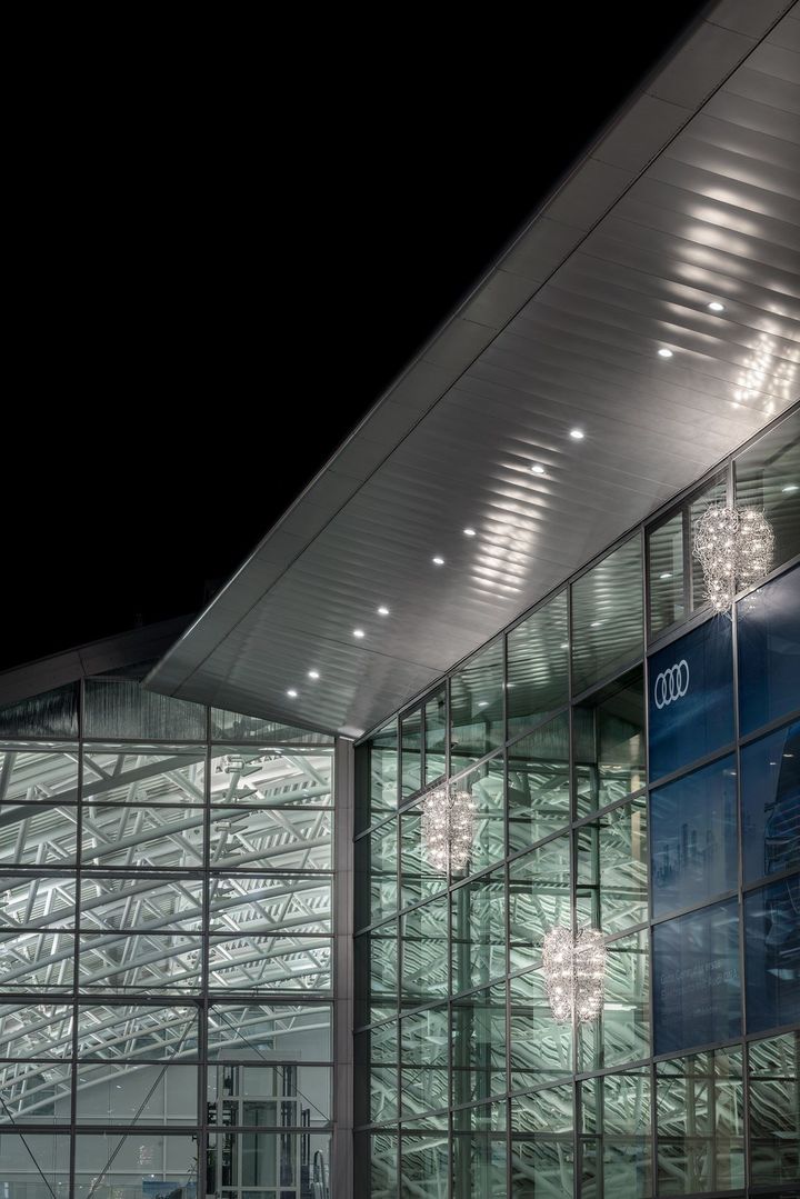 Штаб-квартира Audi в Ингольштадте, крупнейшая производственная площадка известного автопроизводителя, получила уникальное освещение от Catellani & Smith. Как свет может не только улучшить функциональность, но и стать частью архитектурного дизайна?