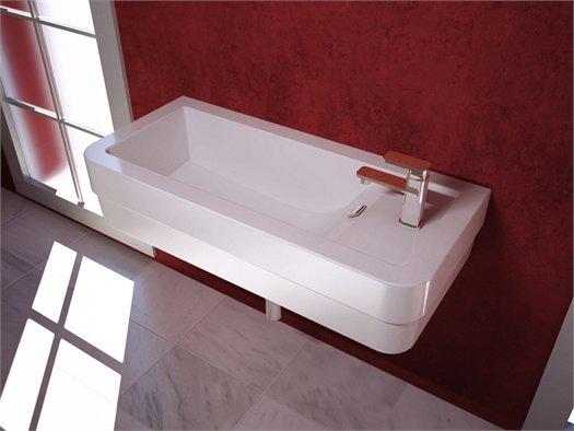 Коллекция включает умывальники различных форматов: от больших раковин размером 100x45 см до компактных моделей для небольших помещений. Все умывальники оснащены смесителями, расположенными на короткой стороне, что придает им уникальный вид и улучшает функциональность.