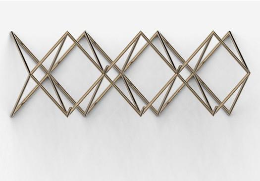 В коллекцию входят книжный шкаф, консоль, вешалка и сиденье. Каждый элемент отличается скульптурной формой, которая меняется в зависимости от угла зрения, создавая динамичный визуальный эффект.