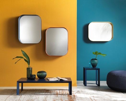 Зеркало Diletta сочетает в себе минимализм и яркость, доступно в различных цветах и имеет встроенную полку.