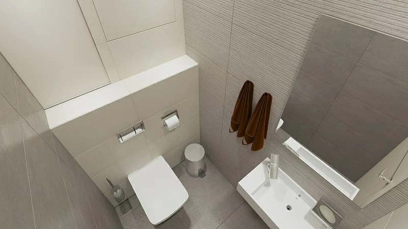 Рекомендуется использовать водостойкие материалы, такие как плитка, и предпочитать светлые оттенки для визуального увеличения пространства.