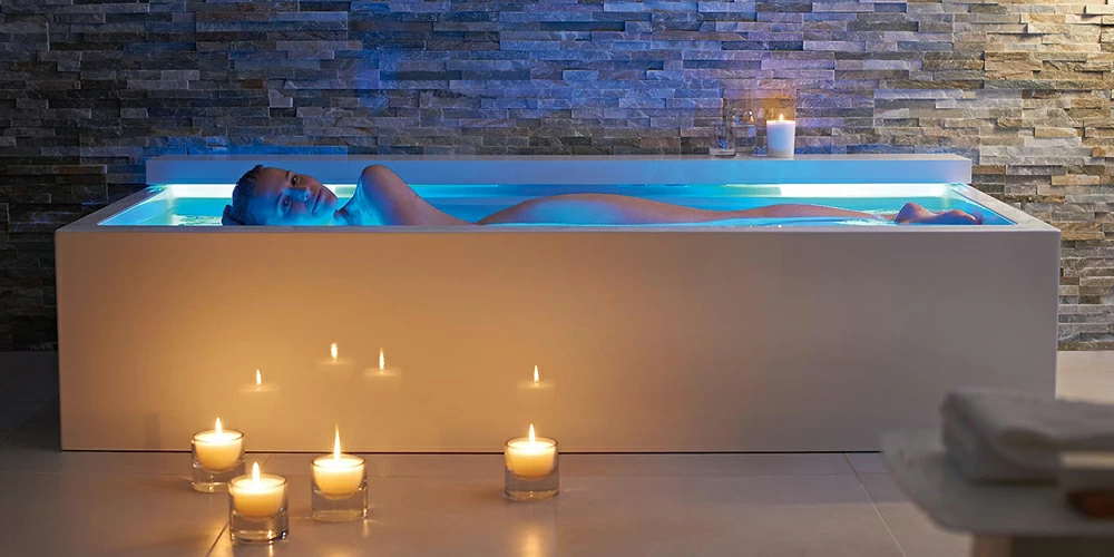 Одной из популярных моделей является Duravit Sundeck. Эта ванна оснащена форсунками для гидромассажа, поддерживает температуру воды и имеет опцию хромотерапии. Она также подходит для установки на улице благодаря устойчивым к погодным условиям декоративным панелям.