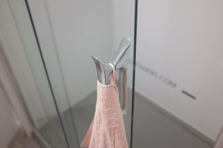 Закаленное безопасное стекло толщиной 8 мм и водоотталкивающее покрытие ClearVue обеспечивают долговечность кабины. Скрытые механизмы и эргономичная ручка добавляют эстетики и удобства.
