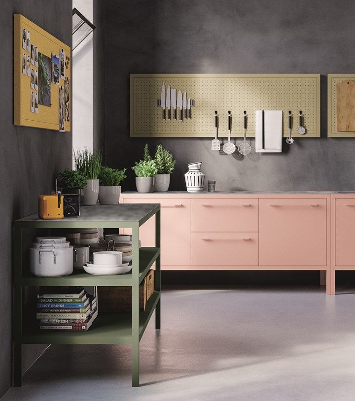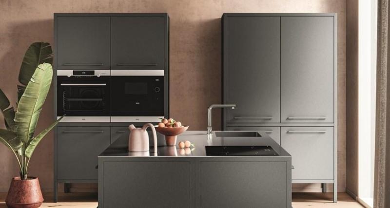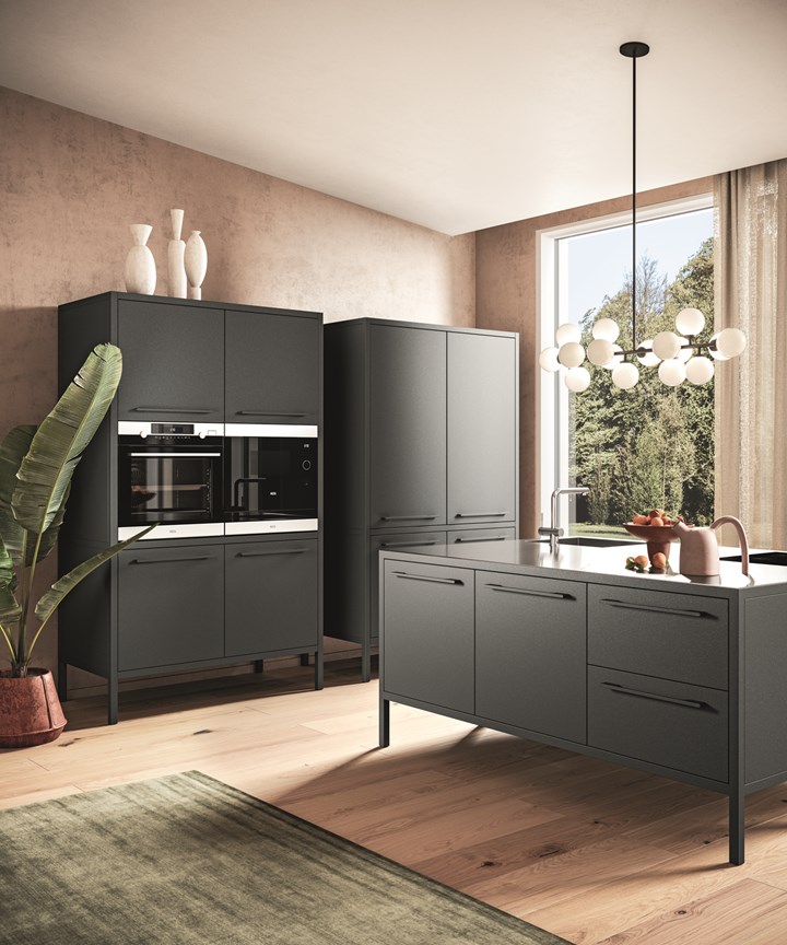 Новые колонны Frame представлены в двух вариантах высоты и позволяют создавать различные комбинации с дверцами, ящиками и бытовой техникой.