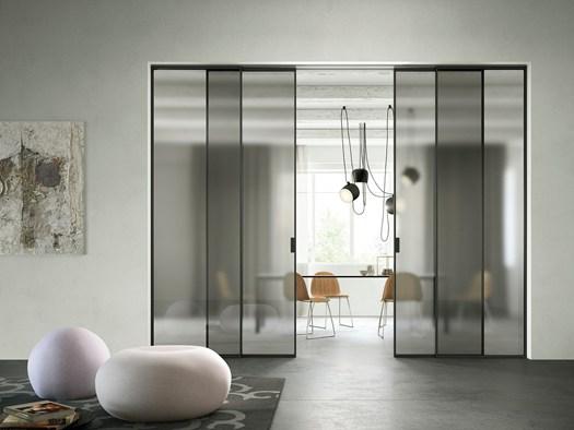 Scenario: Модульная система раздвижных стеклянных дверей, идеально подходящая для офисов и жилых помещений, где требуется легкость и свет.