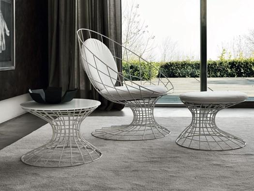 Включает кресла, столики и пуфы из плетёного металла. Доступны в различных цветах и подходят как для интерьера, так и для уличного использования.