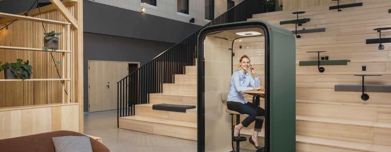 Framery One — это инновационная капсула, предлагающая личное пространство с отличной звукоизоляцией и технологией 4G, которая обеспечивает беспрепятственные видеозвонки.