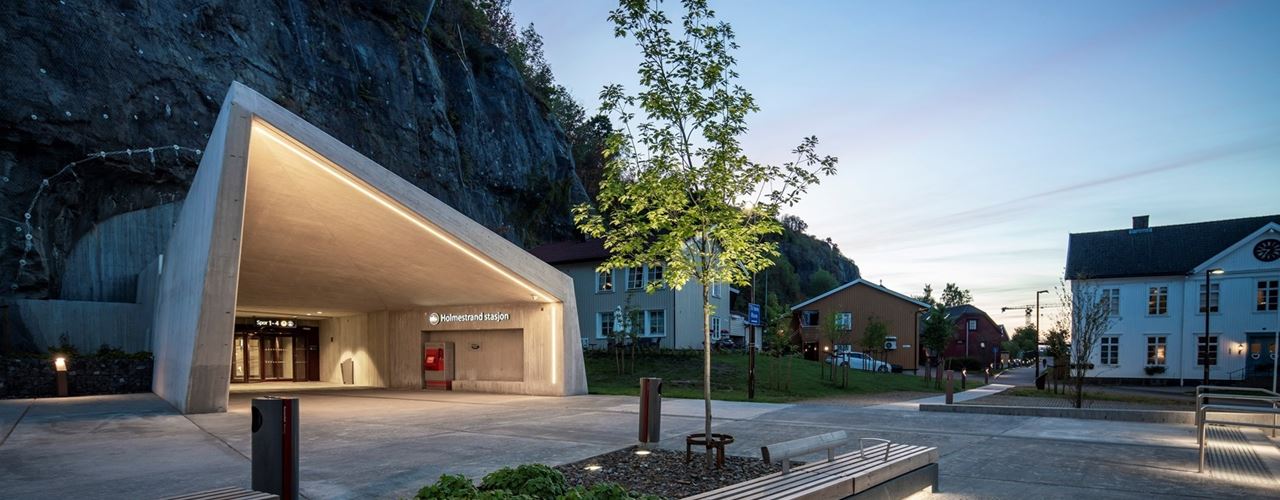 На станции Holmestrand были применены световые решения, которые гармонично интегрируются с природным окружением и архитектурой.