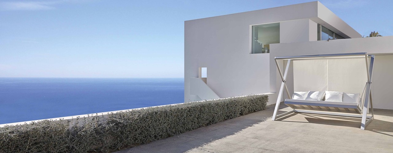 Диван Al Fresco и садовые качели Nao-Nao разработаны для совместного использования. Они изготовлены из современных материалов, что делает их устойчивыми к внешним воздействиям.