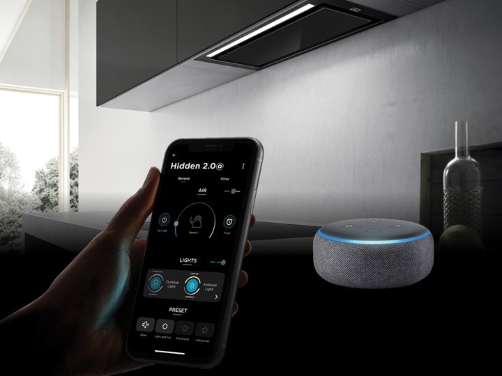 Вы можете управлять вытяжкой через приложение Elica Connect или голосом, используя Amazon Alexa.