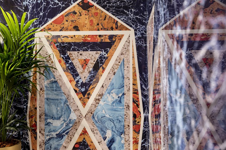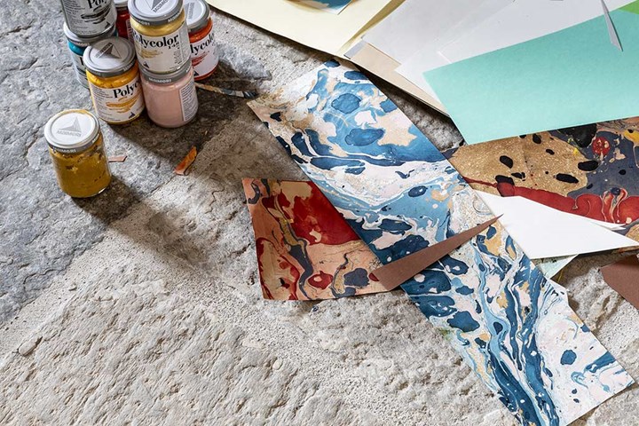 Коллекция использует древние декоративные техники, вдохновленные мраморной бумагой, для создания уникальных текстур.