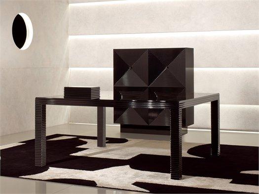 Использование черного дерева макассар и лакированной древесины создает неповторимый стиль.