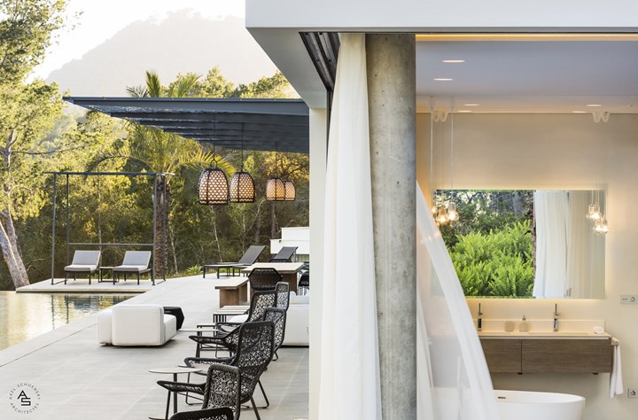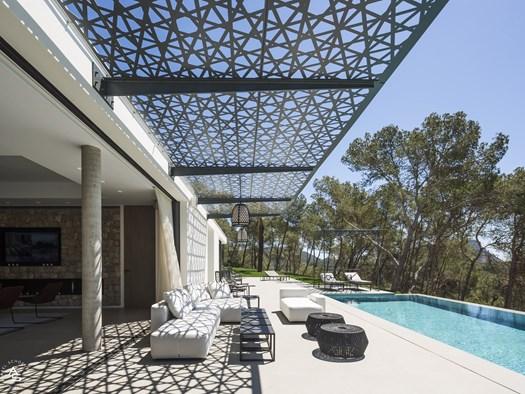 Выбор материалов играет ключевую роль. Например, в проекте виллы на Ибице использованы теплые и нейтральные оттенки, такие как серо-коричневый и бежевый. Эти цвета гармонируют с природой, создавая плавный переход между архитектурой и окружающим ландшафтом.