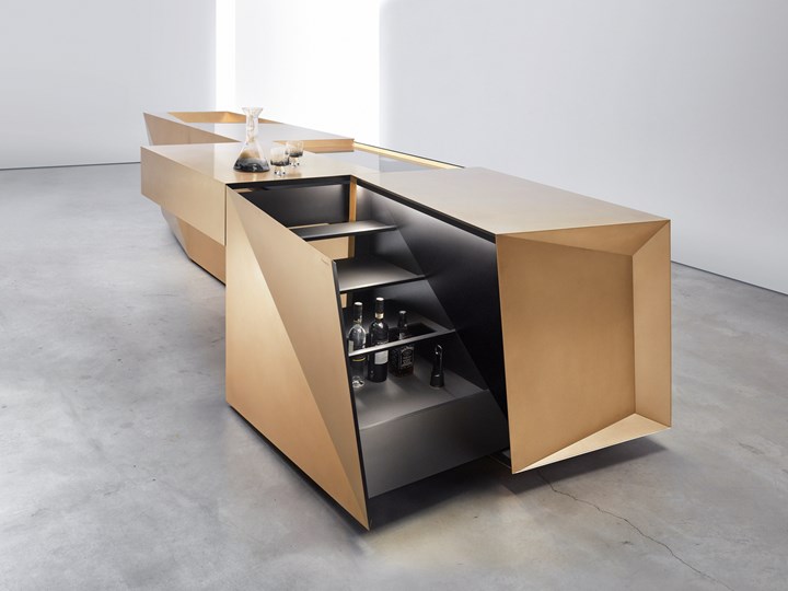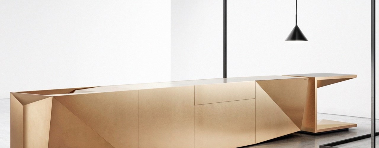 Кухня FOLD предлагает уникальное сочетание дизайна и технологий с использованием томпака и интегрированного M.POD.