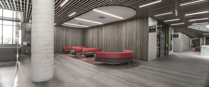 В новых зданиях Сиднейского университета были использованы плиты LAMINAM для облицовки стен и полов. Это позволило создать современные и функциональные пространства.