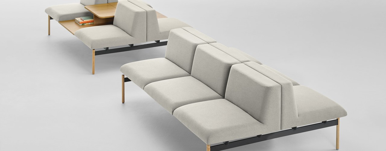 Коллекция LAPSE отличается плавными линиями и закругленными основаниями, что создает атмосферу непрерывности и графической текучести. Модули могут быть скомбинированы для создания комфортных зон для встреч и отдыха.