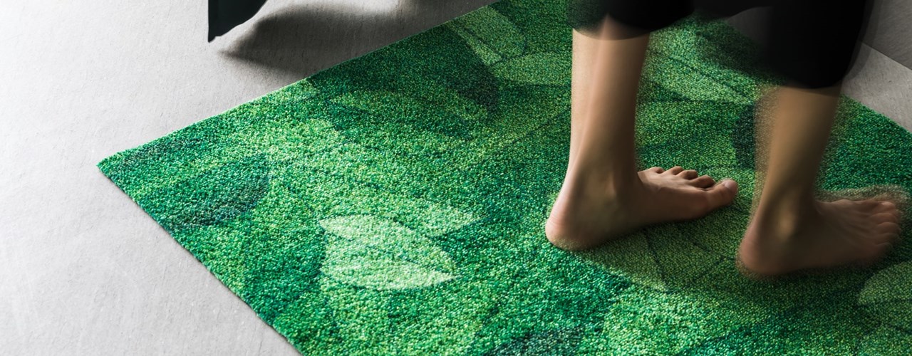 Коллекция Foliage от Heymat предлагает коврики из 100% переработанного ПЭТ, сочетающие в себе экологичность и высокое качество.