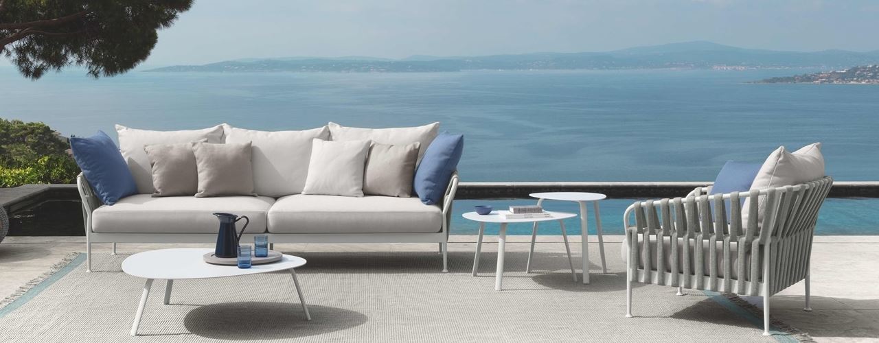 Коллекция включает в себя элементы с удобными подушками и веревочным переплетением, создающим сетчатый эффект для игры света и тени.