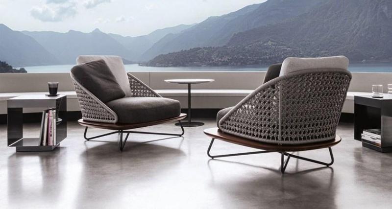 Minotti предлагает коллекцию Rivera, в которой сочетаются металл, дерево ироко и плетеная веревка. Это позволяет создать уютную атмосферу на открытом воздухе.