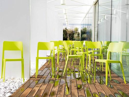 Коллекция включает в себя различные модели: от строгих штабельных стульев до кресел с обивкой и подлокотниками, что позволяет выбрать идеальный вариант для любых нужд.