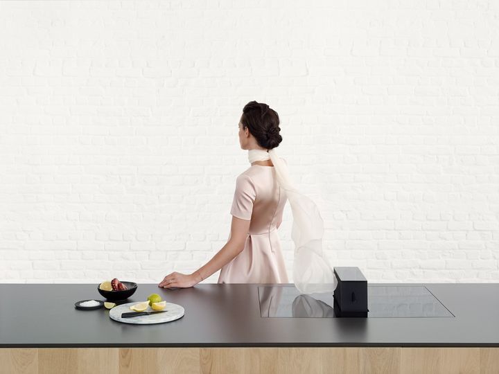 Вытяжка ONE интегрирована в варочную панель, оставаясь невидимой до момента использования. Это решение обеспечивает тихую и эффективную работу.