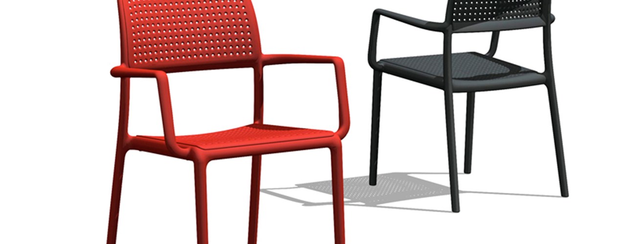 Стул Bora от Nardi отличается легкостью и прочностью, выполнен в различных цветах и подходит для использования как в интерьере, так и на улице.