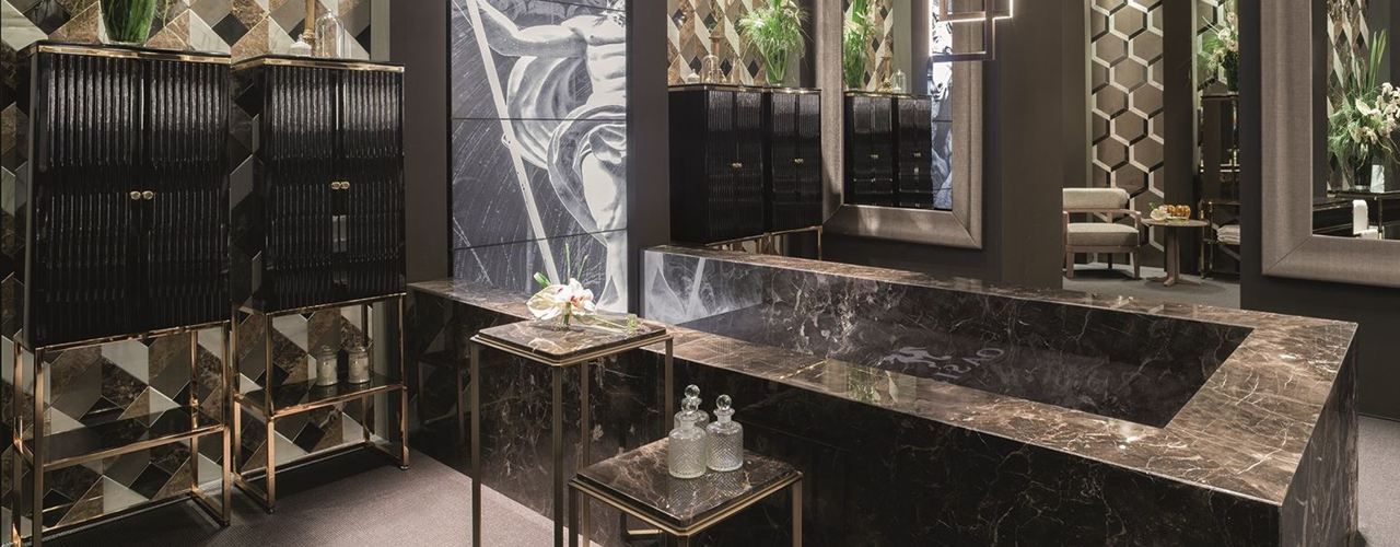 На выставке Salone del Mobile 2015 мрамор стал одним из центральных элементов в коллекциях Oasis. Мраморные столы и аксессуары предлагают изысканный дизайн и насыщенные цвета, которые подчеркивают элегантность интерьера.