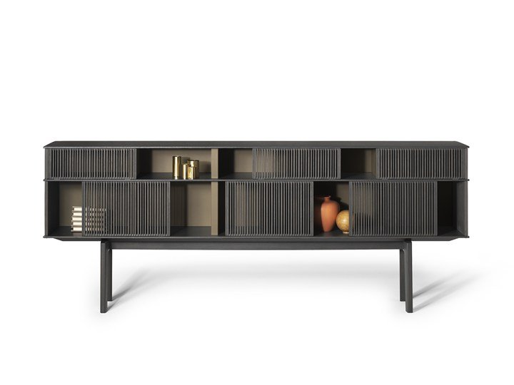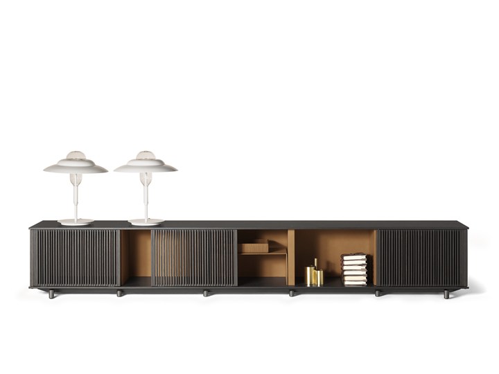 Система Lloyd от Poltrona Frau предлагает инновационный подход к хранению с изменяемой геометрией и световыми решетками, что позволяет создать уникальные композиции.
