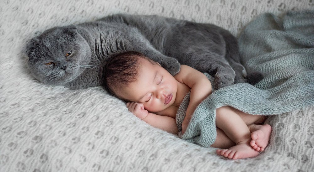 - Оставлять кошку и новорожденного без присмотра.
