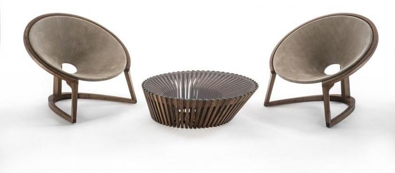 Коллекция включает в себя шезлонги и журнальные столики, изготовленные в ограниченном количестве и сочетающие дерево и кожу для создания роскошного дизайна.