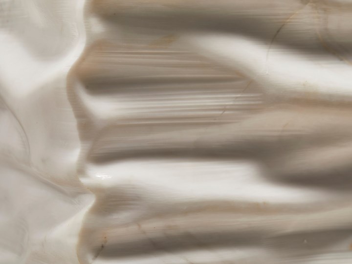 Проект ossimoro от antoniolupi и Calvi Brambilla представляет собой скульптуру-раковину из белого мрамора, где материал кажется мягким и текучим благодаря новой технике моделирования.