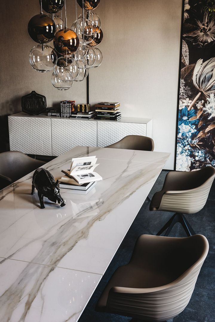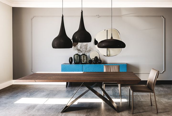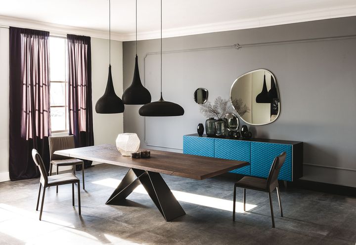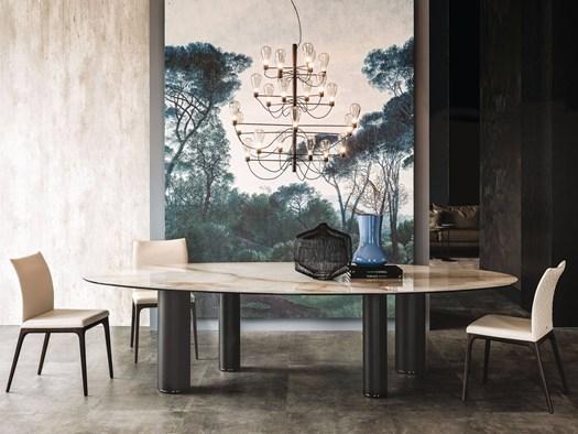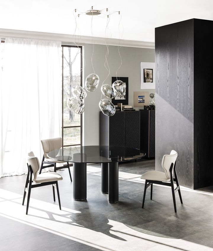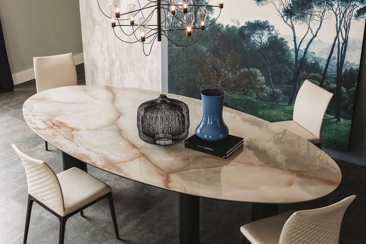 Столы изготавливаются из ореха Каналетто, натурального дуба, сверхпрозрачного стекла и керамики.