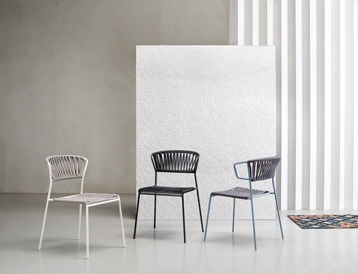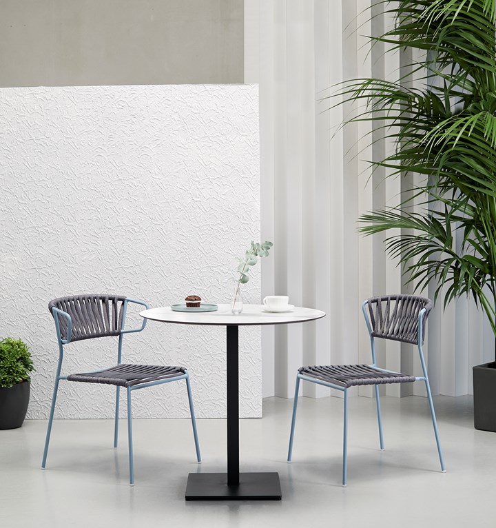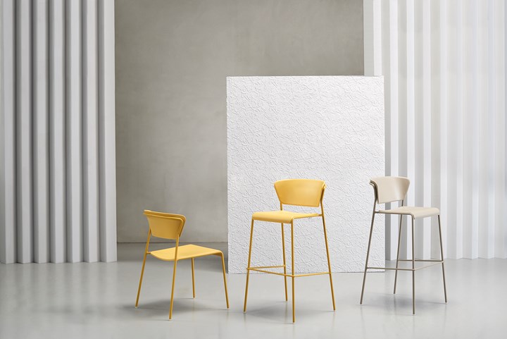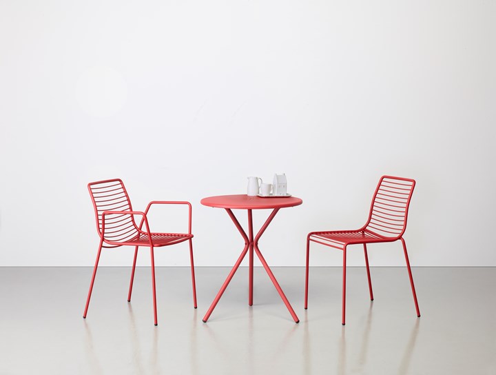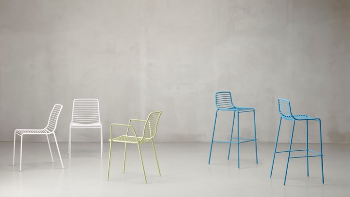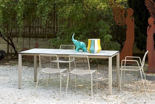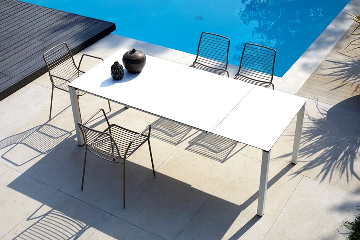 SCAB Design представляет новинки, такие как раздвижной обеденный стол и стулья из технополимера. Эти модели сочетают в себе практичность и современный стиль, идеально подходящие для открытых пространств.