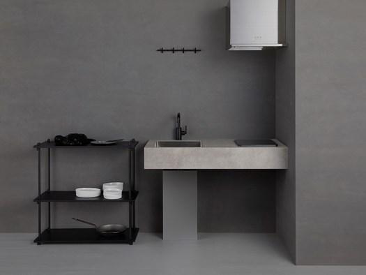 Кухня Mortana сделана из серого керамогранита, что придаёт ей стильный и современный вид, идеально подходящий для маленьких квартир и офисов.