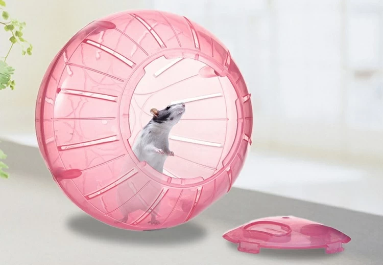Шары из прозрачного пластика позволяют хомяку видеть мир вокруг. Некоторые модели имеют подставки для использования как колесо. Однако важно следить за креплениями дверцы, чтобы избежать побега животного.