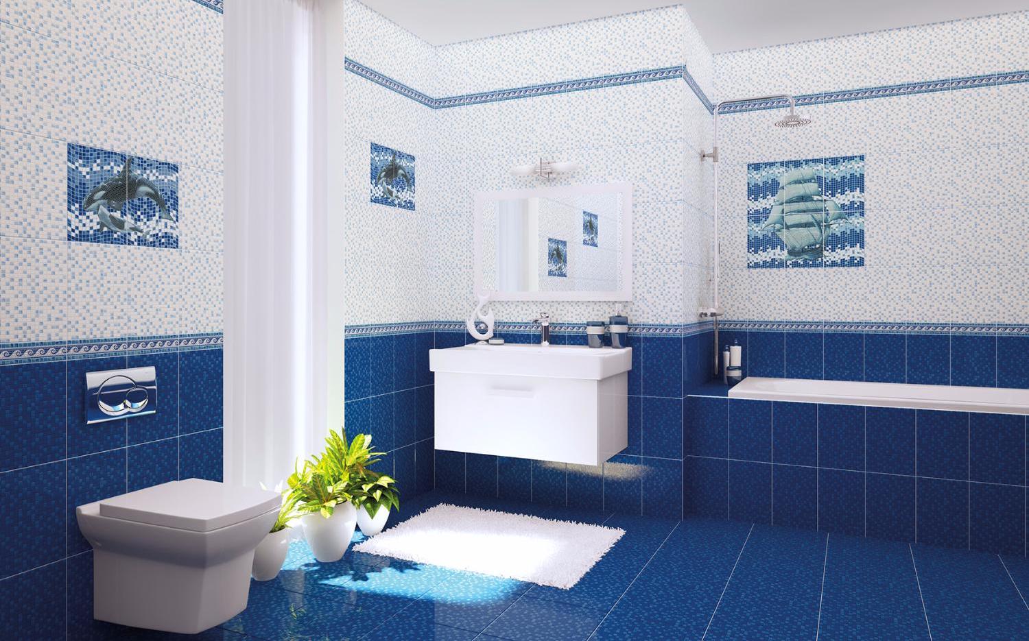 Синий цвет создает атмосферу спокойствия и умиротворения, что идеально подходит для ванной комнаты.