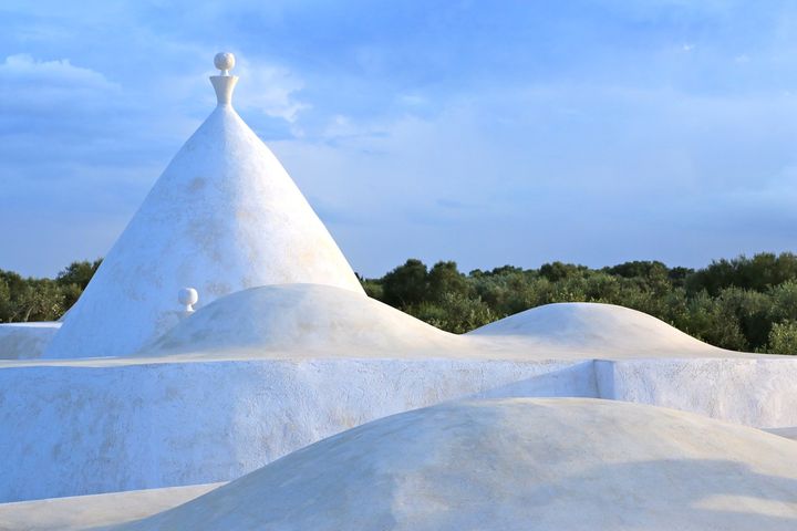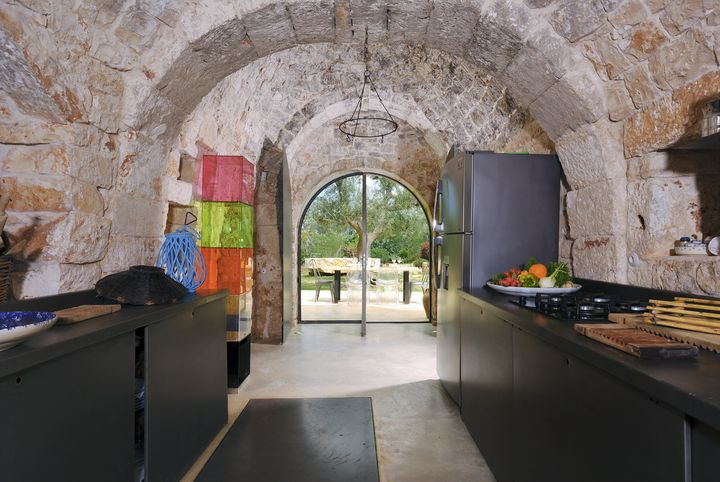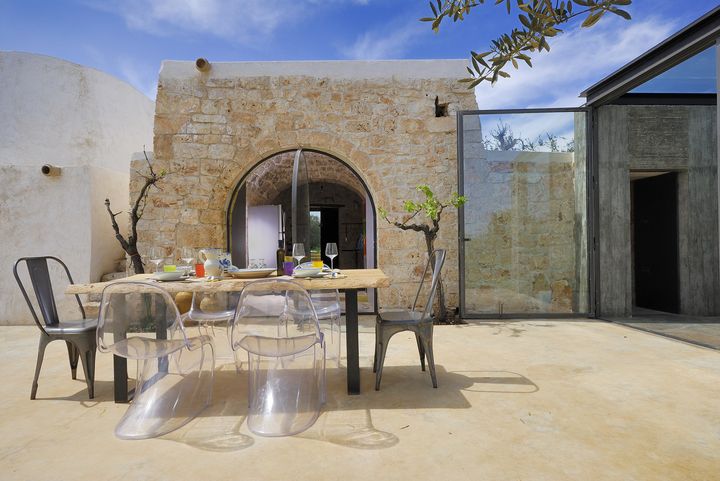 В проекте реконструкции комплекса трулли в Остуни использовался стеклянный куб, который стал центральным элементом архитектурного решения. Это позволило создать прозрачное и светлое пространство, сохранив при этом оригинальные формы трулли.