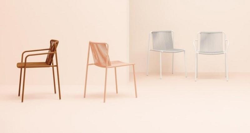 Стулья Tribeca изготовлены из плетеного ПВХ и металла, что обеспечивает их прочность и легкость. Дизайн вдохновлен классическими садовыми стульями 60-х годов.