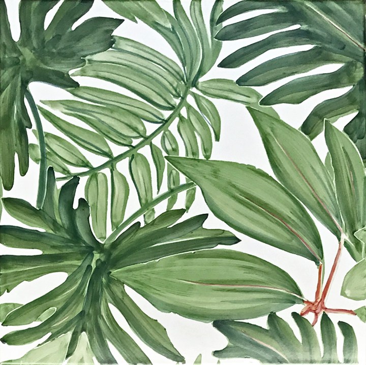 Плитка Verde Verticale уникальна благодаря ручной росписи и использованию изображений растений, что делает её идеальной для создания зелёного уголка в доме.