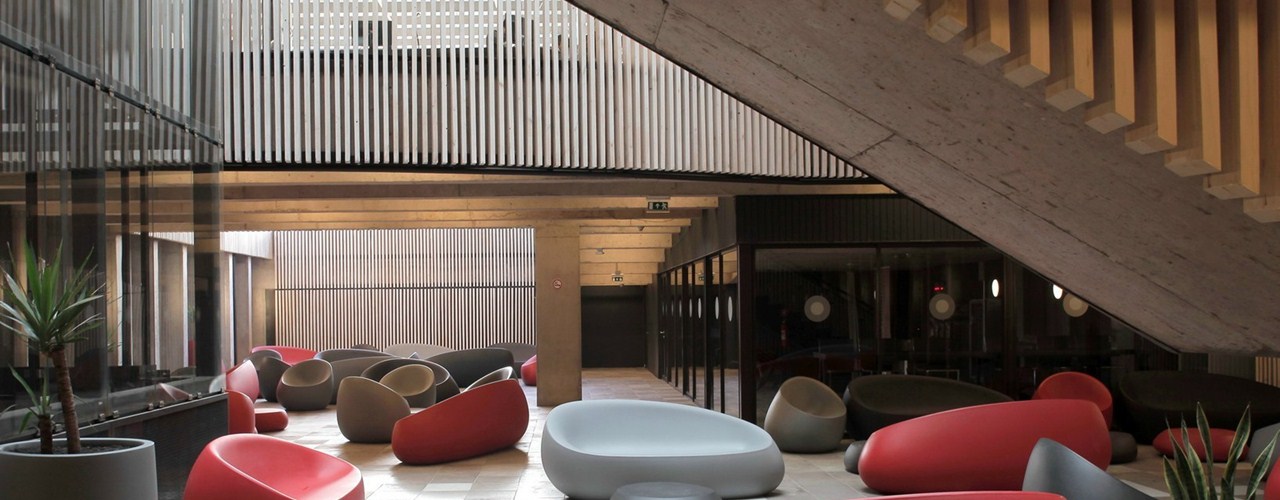 Vondom предлагает инновационные решения, которые гармонично вписываются в современные архитектурные проекты. Коллекция STONE от Стефано Джованнони и Элизы Гарган стала ключевым элементом в интерьере университета.