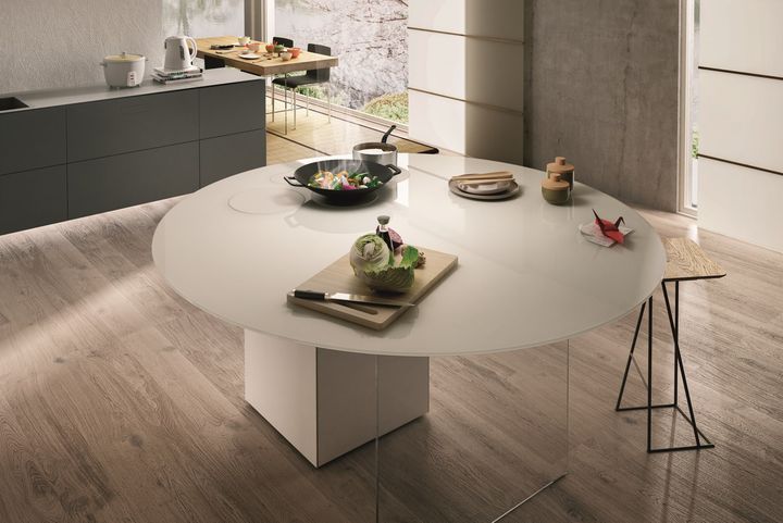 Проект Air от Даниэле Лаго — это кухня, в которой центральное место занимает круглый стол. Такая компоновка способствует диалогу и взаимодействию участников.