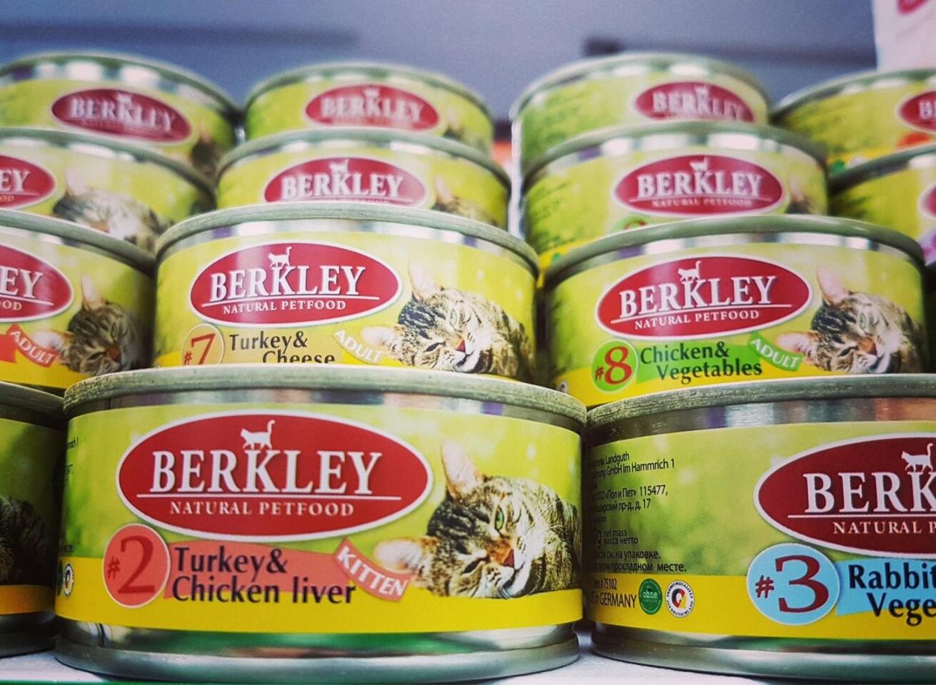 Berkley предлагает разнообразные паштеты и паучи, которые содержат высокую долю мяса и полезные добавки. Они подходят для взрослых кошек и котят, включая особые формулы для пищеварения.