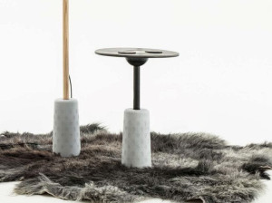 Круглый журнальный столик с бетонным основанием и кожаным верхом