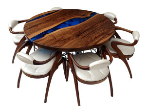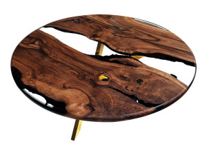 Круглый стол из смолы и орехового дерева