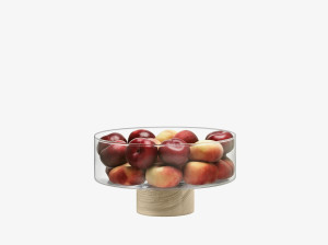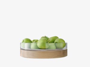 Круглый поднос из дутого стекла и ясеня-Ø31cm