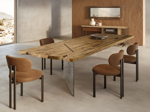 Прямоугольный обеденный стол из стали и дерева
