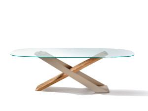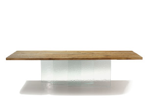 Обеденный стол из дерева и стекла
